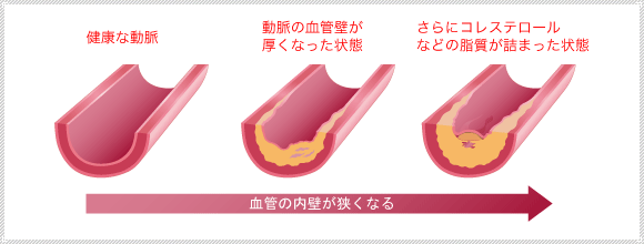 高血圧による動脈硬化によって種々の合併症が引き起こされます